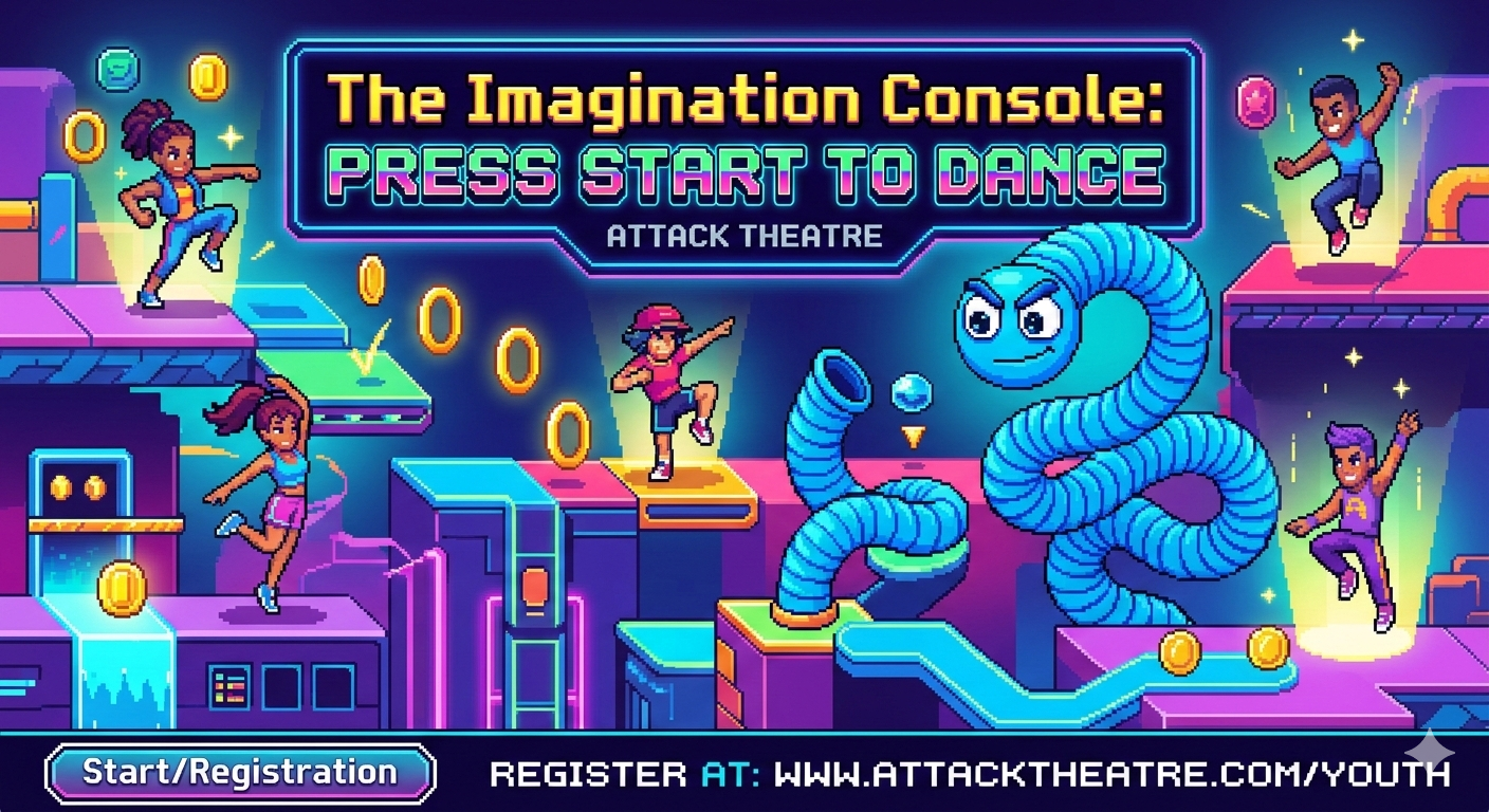 With a welcoming, accessible atmosphere and moments of playful participation, audiences are invited to imagine, move, and make the story their own. Press start and join Attack Theatre for an unforgettable adventure where dance and video games collide!